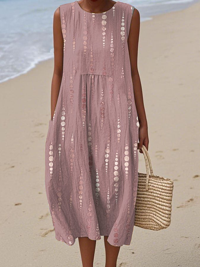 Women's Casual Dot Print Round Neck Sleeveless Dress